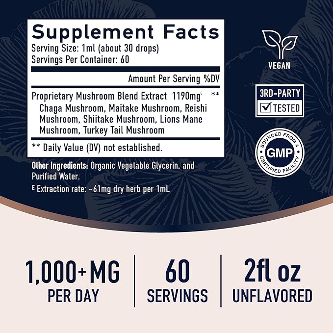 - MAXIMUM ABSORPTION: Our mushroom complex and Lions Mane liquid drops offer maximum absorption so you don’t miss out on any nutrients. Each bottle contains 2 fl oz. and 60 servings for your everyday dose.