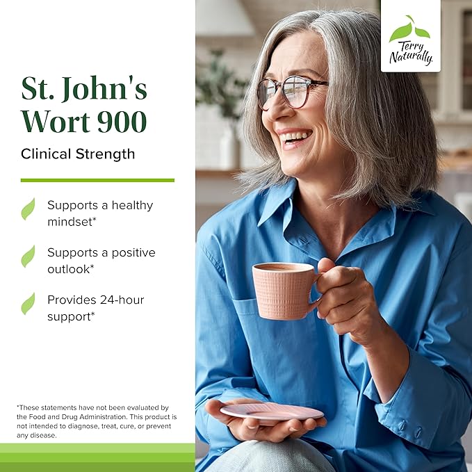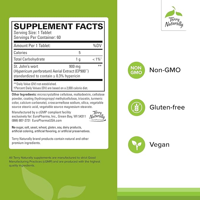 Terry Naturally St. John’s Wort 900 mg - 60 Tablets - Non-GMO, Vegan, Gluten Free - 60 Servings