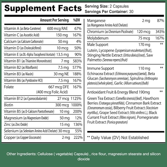 - * SUPPORTS IMMUNE HEALTH- Multi vitamin men Key vitamins like vitamin C, vitamin D, and zinc are crucial for maintaining a strong immune system, helping to defend against common illnesses like colds and infections.