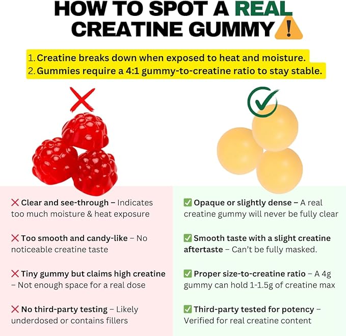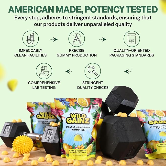 - 🔬MADE IN USA & POTENCY TESTED - Purchase with confidence knowing that our Creatine Monohydrate Gummies are made in the USA in a GMP-certified facility, 3rd party lab tested and every batch is potency tested to ensure you are receiving a quality and accurately dosed creatine supplement