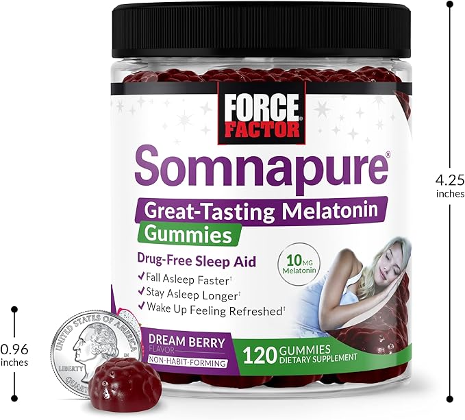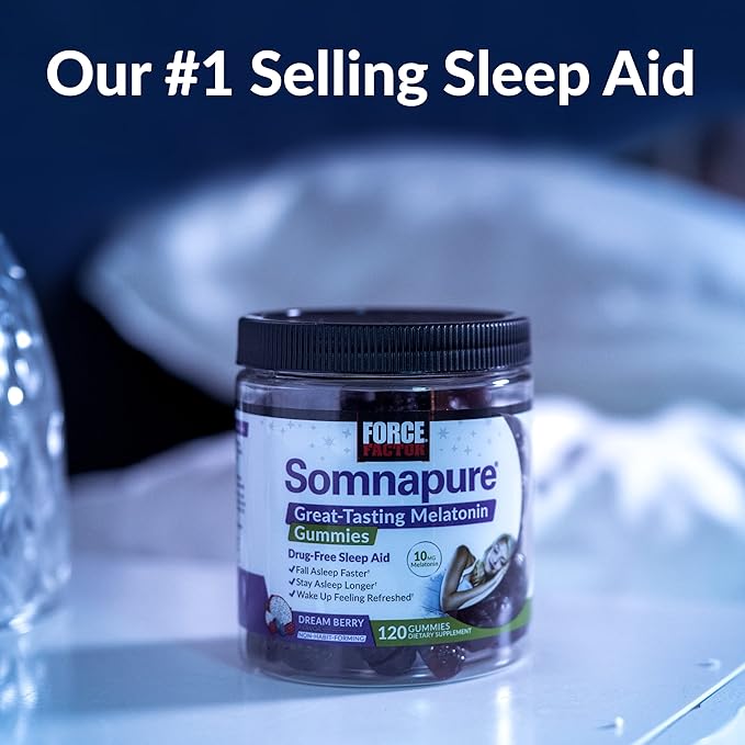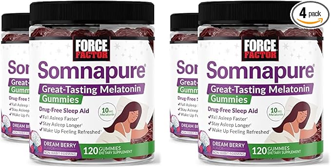 Force Factor Somnapure Gummies with Melatonin, Drug-Free Sleep Support Supplement for Adults with Occasional Sleeplessness, Dream Berry Flavor, 120 Count (Pack of 4)