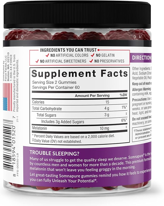 - Somnapure Gummies contain no artificial sweeteners, colors, or preservatives.