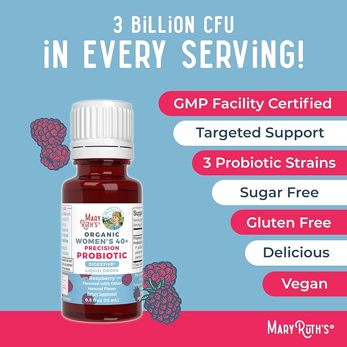 - For Most Lifestyles: MaryRuth's Organic Women's 40+ Precision Probiotic Digestive Liquid Drops are Certified USDA Organic, Vegan, Non-GMO. Dairy Free, Nut Free, Gluten Free, Soy Free, Sugar Free. Made in a GMP Facility. Clean Label Project Verified. B Corp Certified.