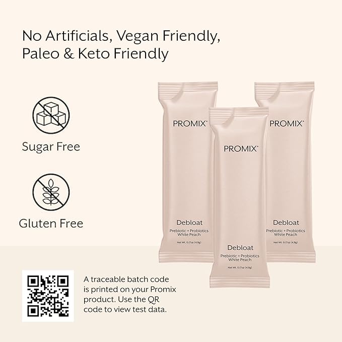 ProMix Nutrition Debloat Prebiotics and Probiotics, Bloating relief for Women, Gut cleanse detox for Men and Immune Support - White Peach - 30 Servings (Pack of 30)