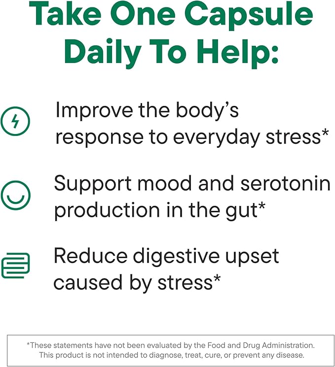 - Stress Support Probiotic–Proprietary blend of clinically proven probiotics helps destabilize unwanted bacteria and support good bacteria growth. This unique blend helps to improve the body’s response to stress and reduce digestive upset caused by stress.