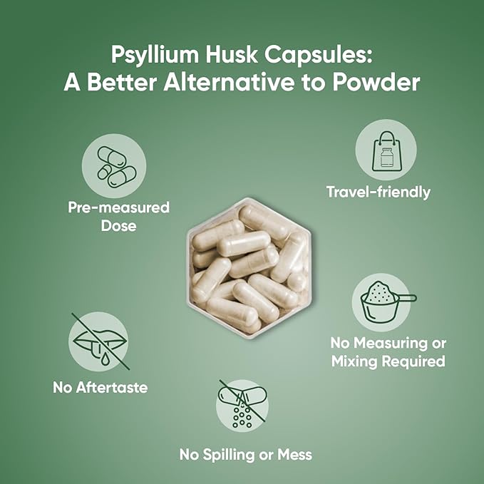 - VEGAN, NON-GMO & ALLERGEN-FREE: Our psyllium husk powder capsules are vegan, gluten-free, magnesium stearate-free & non-GMO, making them suitable for various dietary needs. They are GMP-approved & free from allergens & artificial colors. Committed to quality, we provide high-quality psyllium husk supplement with no unnecessary additives or any known side effects.