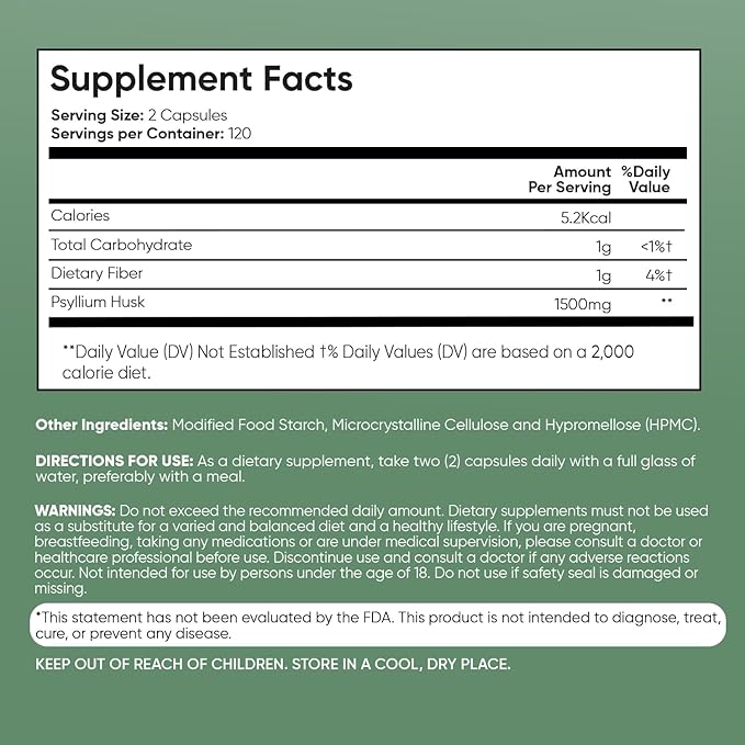 - SUPPORTS DIGESTIVE HEALTH: Our easy-to-swallow psyllium husk capsules offer a convenient way to address tummy troubles. The spongy fiber in psyllium husks absorbs water in the stomach, supporting easy breakdown of food, improved nutrient absorption, and regularity. Psyllium husk supplements also help you feel lighter and fuller between meals.