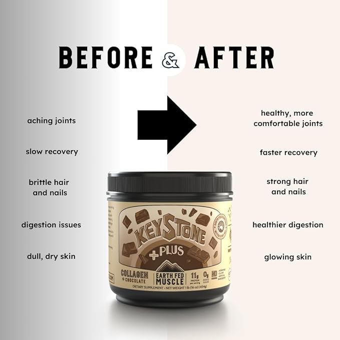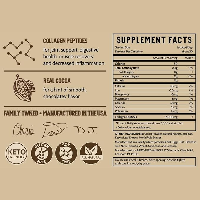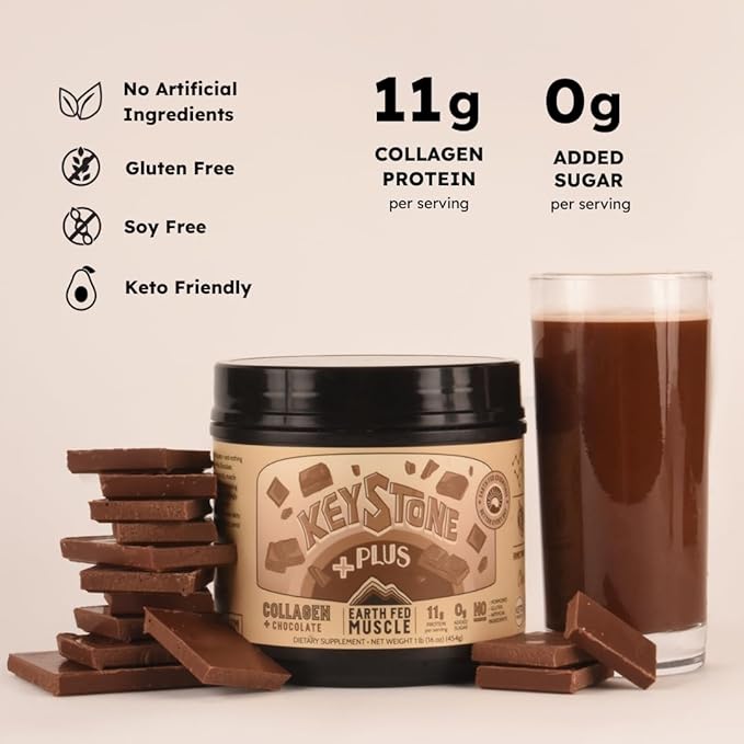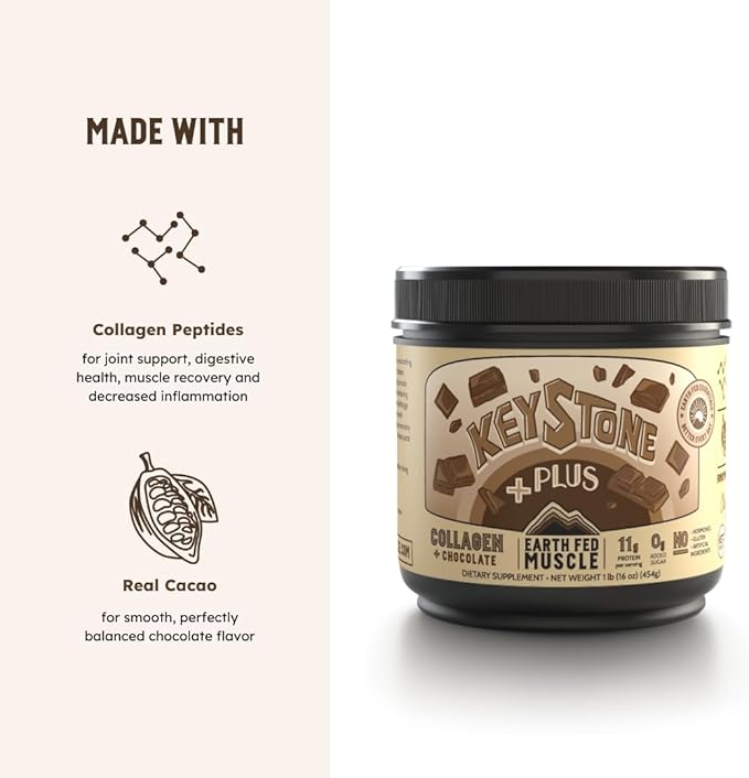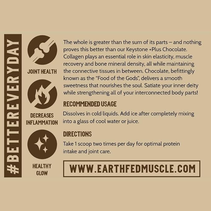 Earth Fed Muscle Keystone Plus Chocolate Collagen - Hair, Skin, Joints, 30 Servings