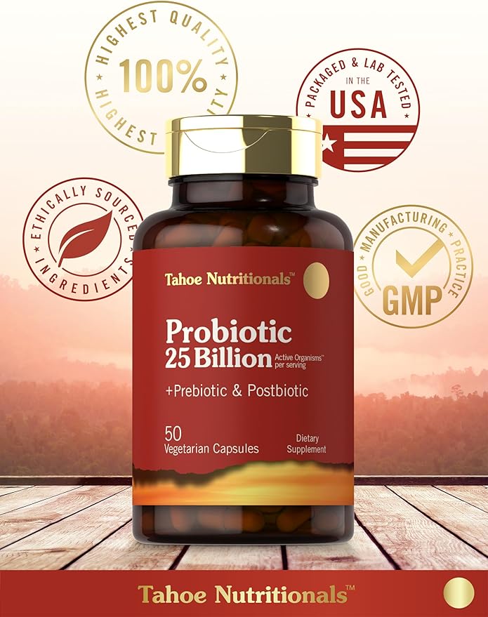 Tahoe Nutritionals Prebiotic, Probiotic & Postbiotic | 25 Billion CFU | 50 Powder Pills | Men and Women's Digestive Health | Vegetarian and Non-GMO Supplement