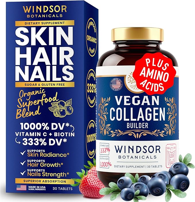 - Vegan Collagen Supplements - Plant-Based Collagen Pills for Women and Men - Hair Skin Nails and Joints Collagen Builder Vitamins with Vitamin C and Biotin - 30 Non-GMO Collagen Booster Tablets