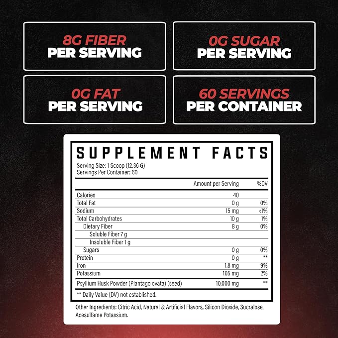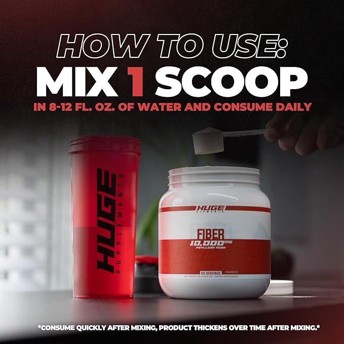 - Optimally Dosed: We don't cut corners when dosing our products correctly. That's why each serving of Huge Fiber will provide you with a massive 10 grams of psyllium husk, providing you with a significant amount of soluble fiber to support digestive health.