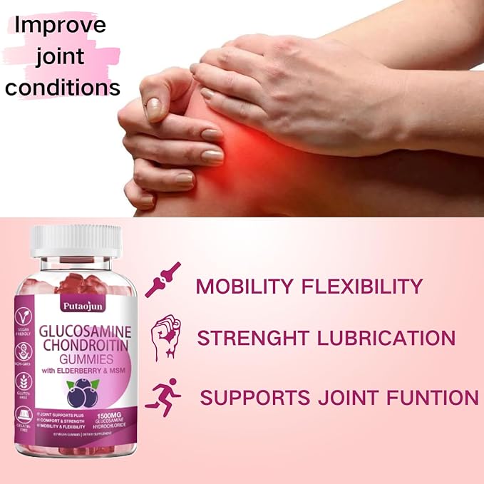 - EXTRA STRENGTH GLUCOSAMINE CHONDROITIN GUMMIES: Our glucosamine Chondroitin gummies are an important chondrotropic nutrient. Putaojun joint support supplement glucosamine chondroitin gummies are loaded with 1500mg glucosamine, 1000mg MSM and 200mg Chondroitin.Containing high levels of nutrients.Bring you closer to a healthy lifestyle.