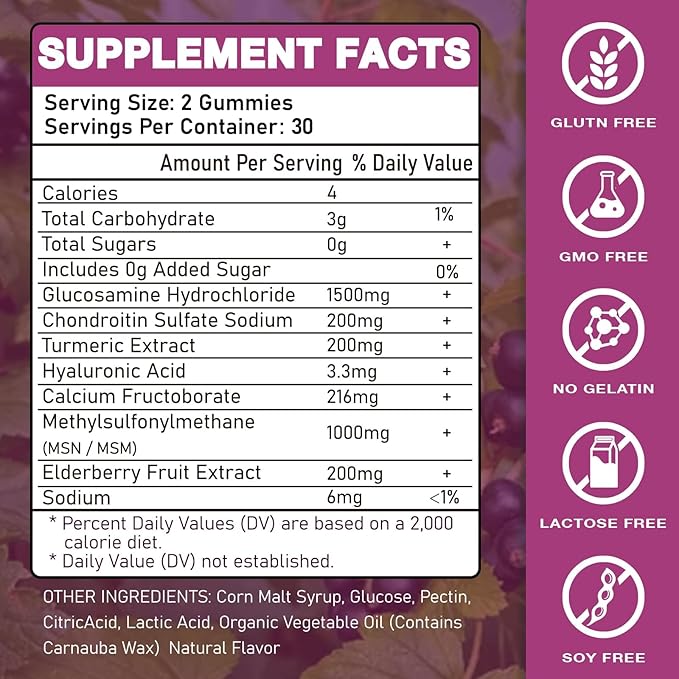 - DELICIOUS AND CONVENIENT: Bursting with flavor, our glucosamine chondroitin gummies are a gender-neutral, age-friendly squad! Sugar-shy, plant-powered, and gluten-gated, they're the perfect sweethearts for your daily routine. Snack your way to steady support, one tasty, chewy hero at a time!