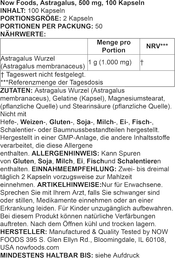 NOW Supplements, Astragalus (Astragalus membranaceus) 500 mg, Immune System Support*, 100 Capsules (Pack of 2)