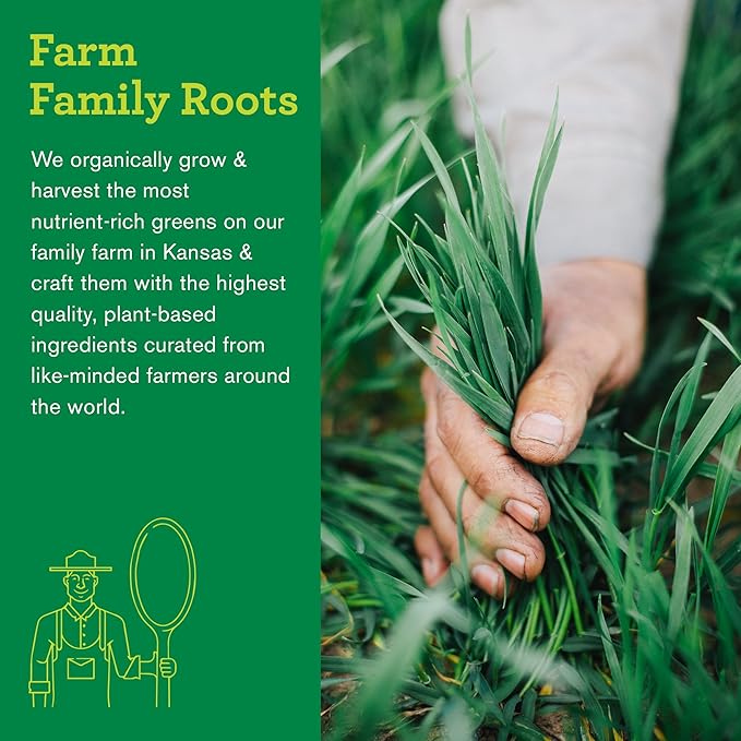 - Crafted with an organic blend of wheat grass, barley & alfalfa grown on our family farm in Kansas and potent blend of over 30 antioxidant-rich superfoods including spirulina & chlorella