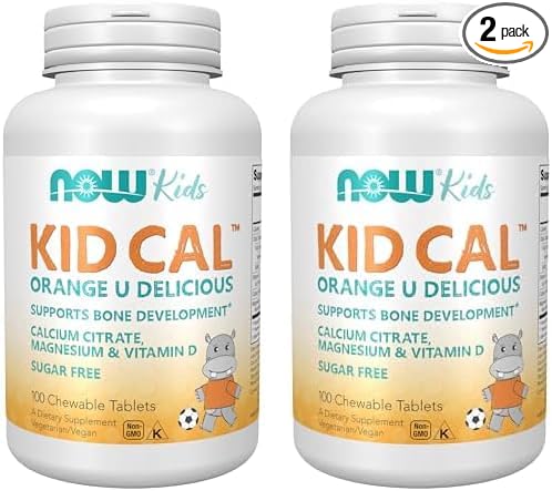 NOW Supplements, Kid Cal with Calcium Citrate, Magnesium and Vitamin D, Tart Orange, 100 Chewables, Packaging May Vary (Pack of 2)