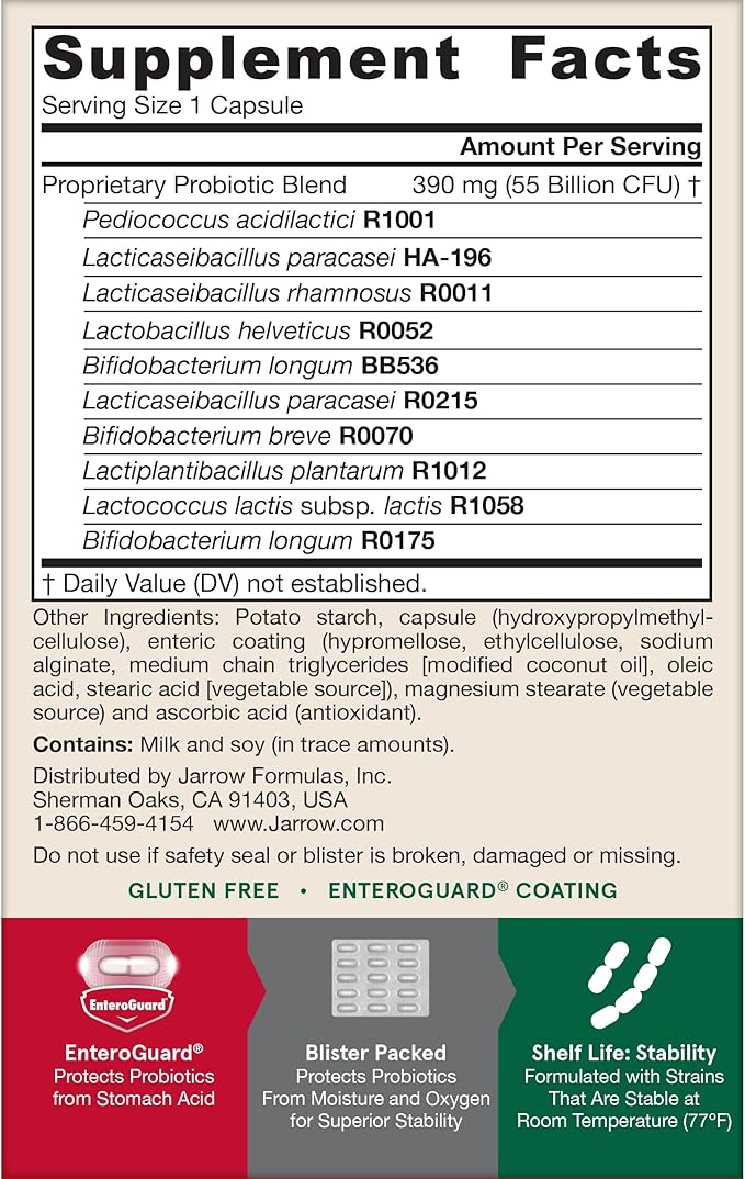 Jarrow Formulas Jarro-Dophilus EPS Advanced, 55 Billion CFU Probiotics, Digestive Support for Adults, 30 Probiotic Supplement Veggie Capsules, Up to 30 Day Supply