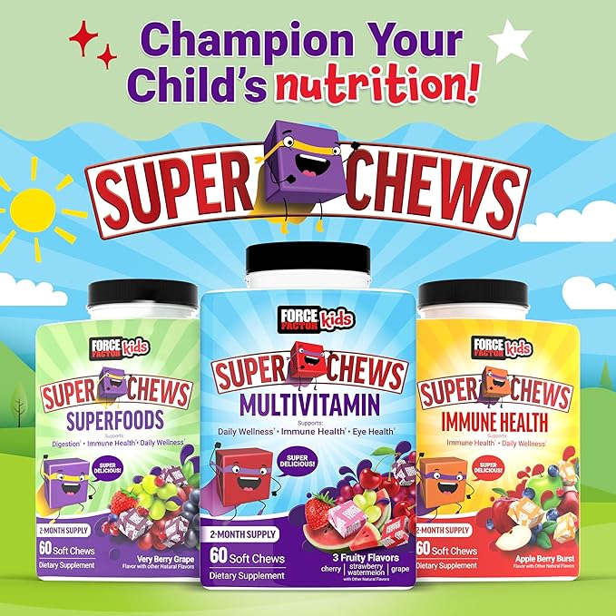 - SUPPORTS DIGESTION, IMMUNE HEALTH, & WELLNESS: Force Factor Kids Superfood Super Chews are specially formulated with vitamins C & D, and antioxidants to support your child's daily wellness, immune, and digestive health.