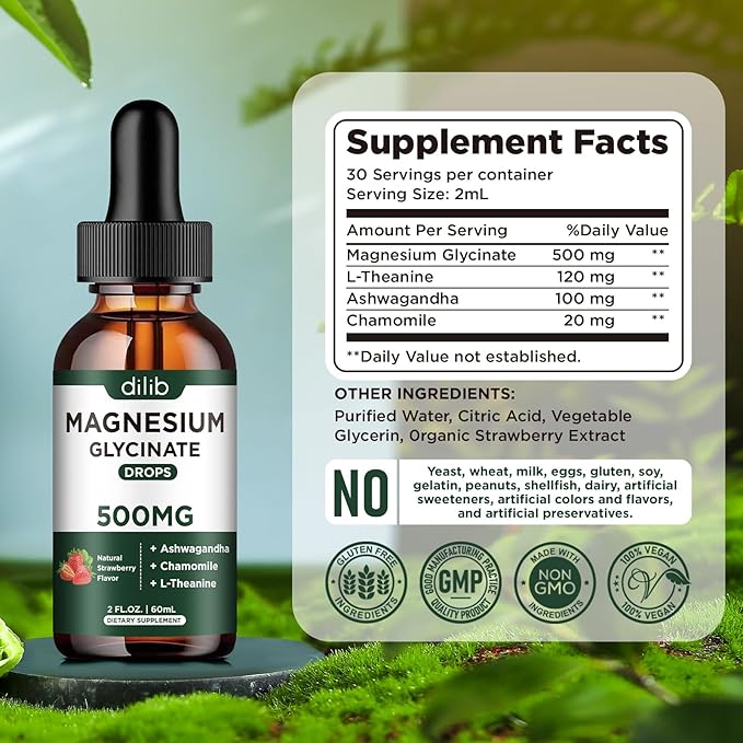 - NATURAL STRAWBERRY FLAVOR AND VEGETARIAN: The great tasting magnesium glycinate drops have a yummy strawberry flavor that everyone loves. And easier to take: directly into the mouth or placed under the tongue which may have a faster and higher absorption rate compared to capsules, pills, or gummies. It is soy free, non-GMO, gluten-free, dairy-free, and vegan-friendly which is more suitable for all men's and women's dietary needs