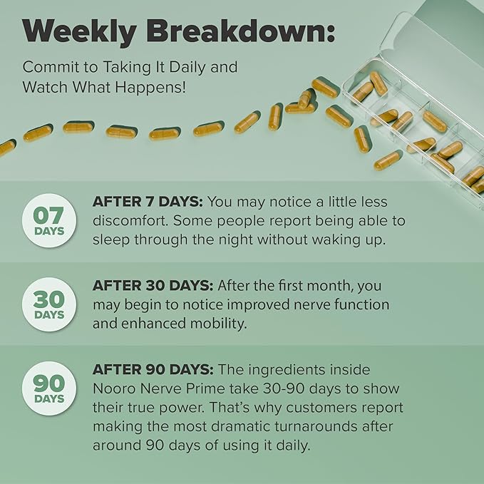 - Enhanced Mobility and Comfort: Are you experiencing discomfort, stiffness, or mobility issues? Our innovative Nooro supplement is designed to support your overall well-being. Packed with powerful antioxidants and botanicals, it helps promote nerve health and repair, allowing you to embrace each day with renewed vitality and confidence.