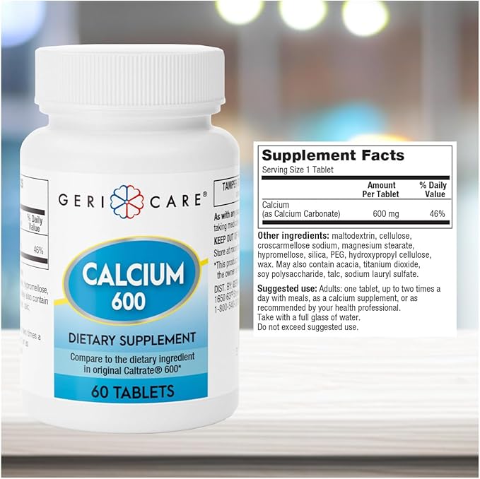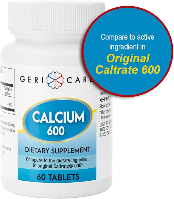 Gericare Calcium 600mg Supports Bone Health, Nutritional Supplement, 60 Count (Pack of 1)