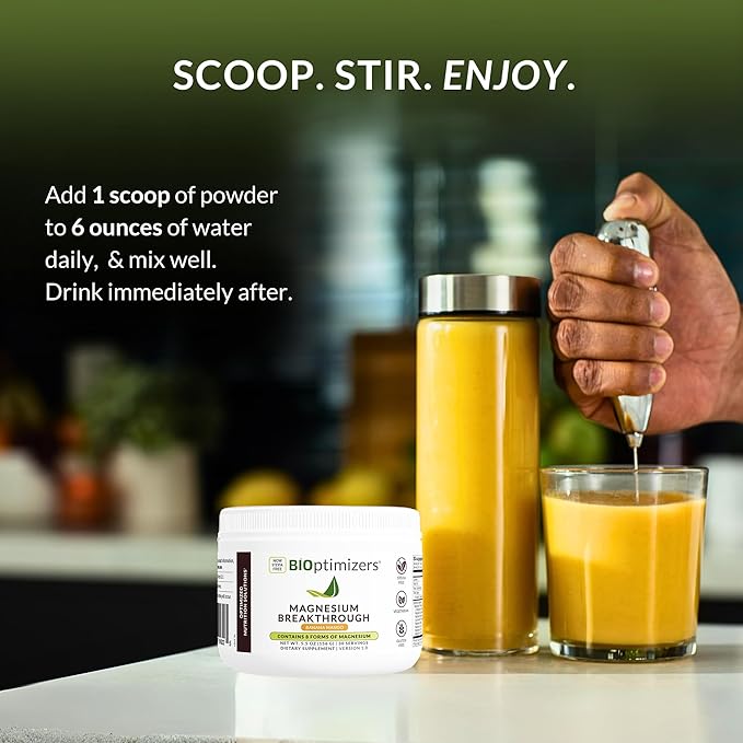 BIOptimizers Magnesium Breakthrough Drink Banana Mango - 8 Forms of Magnesium: Glycinate, Malate, Citrate, and More - Natural Sleep Supplement – 6 oz (30 Servings)