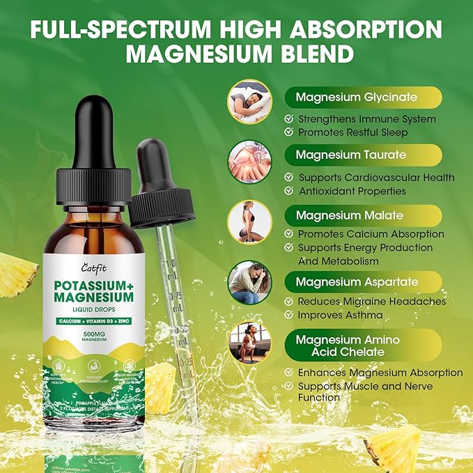 - MAGNESIUM DROPS CAN BOOST IMMUNITY : Potassium magnesium drops contain calcium, it can help strengthen our immunity.The body maintains appropriate potassium levels by balancing potassium intake and loss. Both potassium and magnesium can be obtained from food and electrolyte-containing drinks, drinks that supplement potassium and magnesium can prevent cramps after exercise and relax body while sleeping.