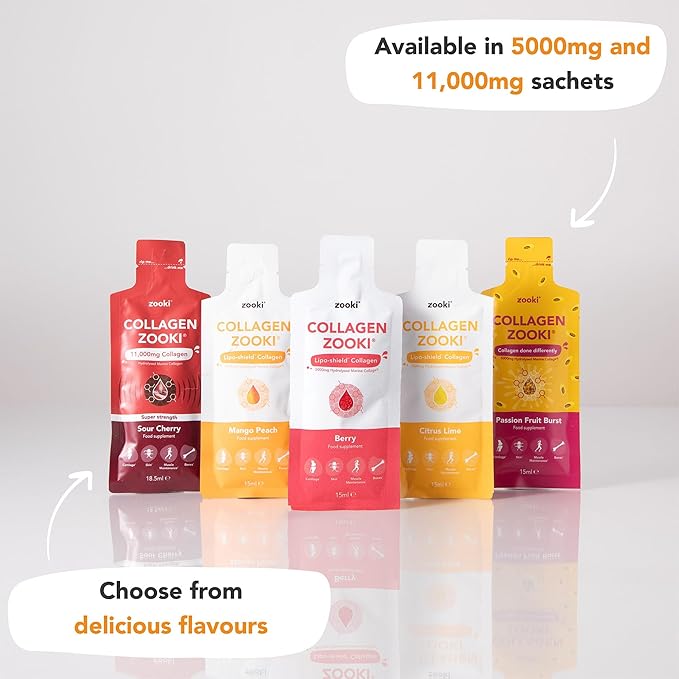 Zooki Super Strength Marine Collagen Liquid Sachets 11,000mg – Great Taste, Sugar Free – Highest Strength Marine Collagen Supplements for Women & Men – Skin, Joints & Hair (Mango Peach, 14 Servings)