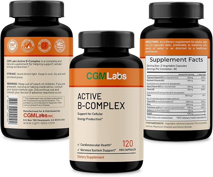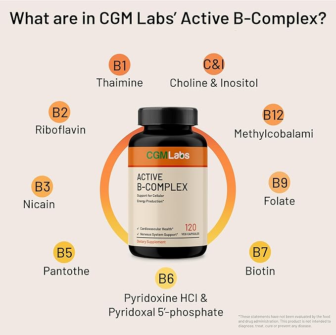 Vitamin B Complex - Active B1, B2, B3, B6, B12, Thiamine, Riboflavin, Niacin, Folate, Biotin, Pantothenic Acid, Inositol by CGM Labs