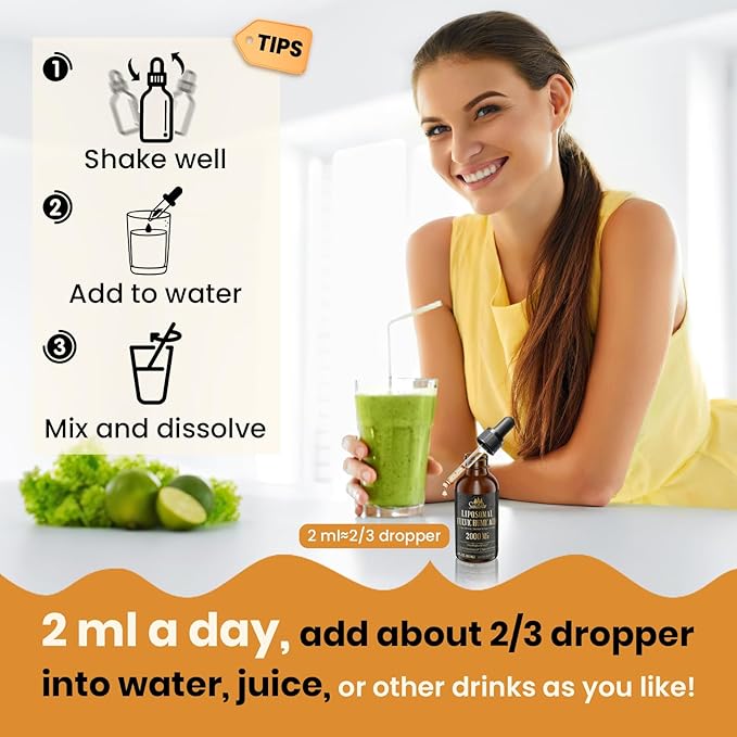 - PURE & ORGANIC VEGAN INGREDIENTS: Trusted pure and natural ingredients. Made in USA. Gluten-Free, Vegan. 2000 MG high dose, 2 ML a day. You can easily mix liquid drops with water, juice, or other drinks as you like every day