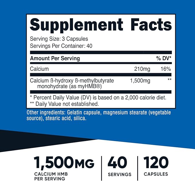 Nutricost myHMB Capsules 1,500MG Calcium HMB Per Serving, 120 Capsules, 40 Servings - Performance Line, Calcium B-Hydroxy B-Methylbutyrate Monohydrate