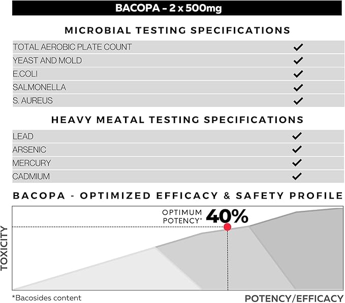 - Optimized Purity and Clinically Studied – Our Bacopa supplement is delivered at optimized std. purity of 40% bacosides that is clinically researched for efficacy and toxicity at that optimized purity.