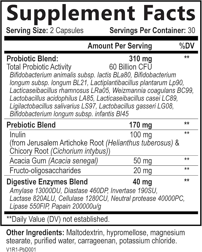 - 60 Billion CFU & 10 Strains – High-potency formula for comprehensive gut support