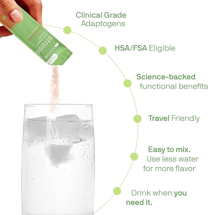 - STRESS BY ROOTINE: This Stress calming drink for adults is a fast acting relax drink mix designed to support the body’s ability to resist and recover from the effects of everyday stress and achieve the benefits of healthy cortisol levels, clarity, relaxation, restful sleep, and energy.