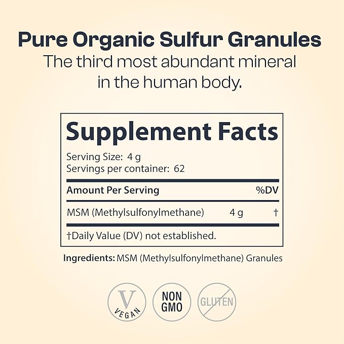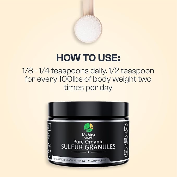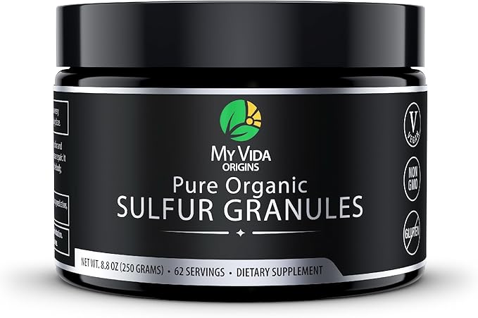 My Vida Origins Pure Organic Sulfur | 99% Pure MSM Granules Supports Skin, Hair, & Joint | Non-GMO, Vegan, Gluten Free (62 Servings) 2 Months Supply