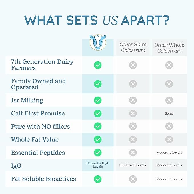 - Whole Colostrum Supplement: Embrace the purity of nature with our 100% whole colostrum powder, untouched and complete as nature intended. Unlike many competitors who remove beneficial fats or introduce additives to "spike IgG's" our product remains unaltered, delivering a full spectrum of essential nutrients. WonderCow Bovine Colostrum offers a natural blend of peptide rich fats, growth factors, essential amino acids, proteins, and immunoglobulins—all vital components for thriving health.