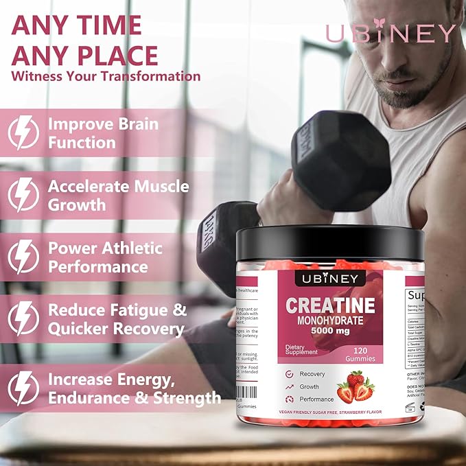 - ✅ Delicious & Convenient – No Water, No Mixing!:Ditch the messy powders! Enjoy the refreshing strawberry flavor in an easy-to-take gummy format. No need for a shaker or water—just chew and go! Perfect for gym-goers, athletes, and fitness enthusiasts looking for a portable and hassle-free way to supplement creatine.