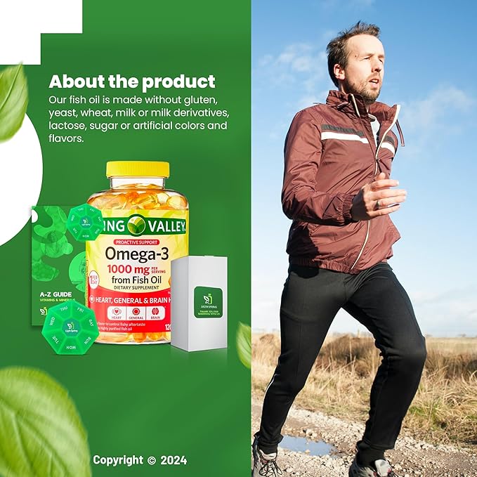 Omega-3 1000mg, from Fish Oil with 120 Softgels with Bundle Exclusive Better Ligth&Spring Guide + Weekly Pill Organizer (3 Items)