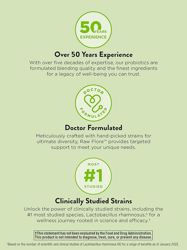 - QUALITY TESTED: Raw Flora probiotics are Non-GMO Project Verified and they are manufactured, packaged, and verified in the United States, following the FDA’s current Good Manufacturing Practices (cGMP)