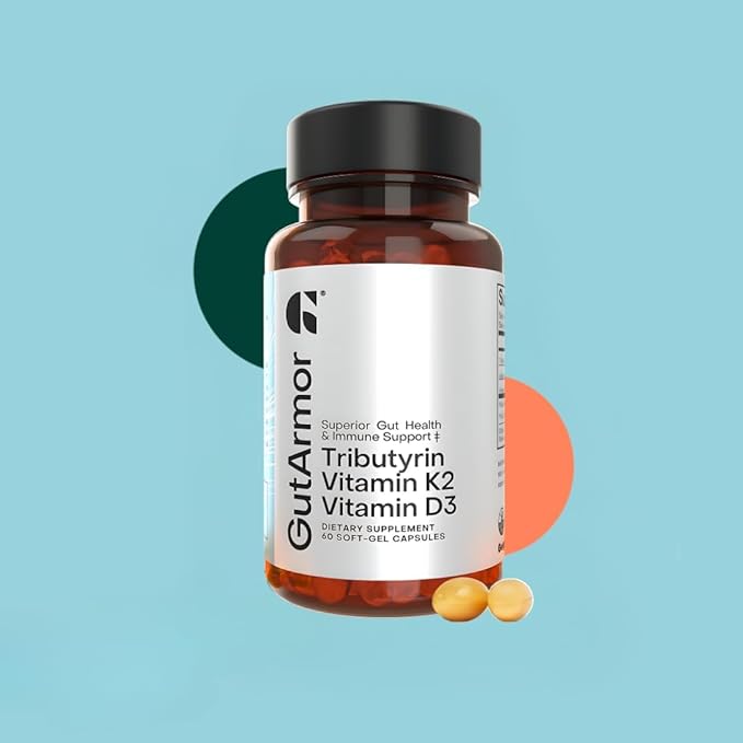 Gut & Heart Health + Immune Support | 2 Month Supply | 60 Soft Gel Capsules | Pure Butyrate 350mg & Vitamin D3 2000IUs & Vitamin K2 120mcg | Heart Health | Gastrointestinal Support