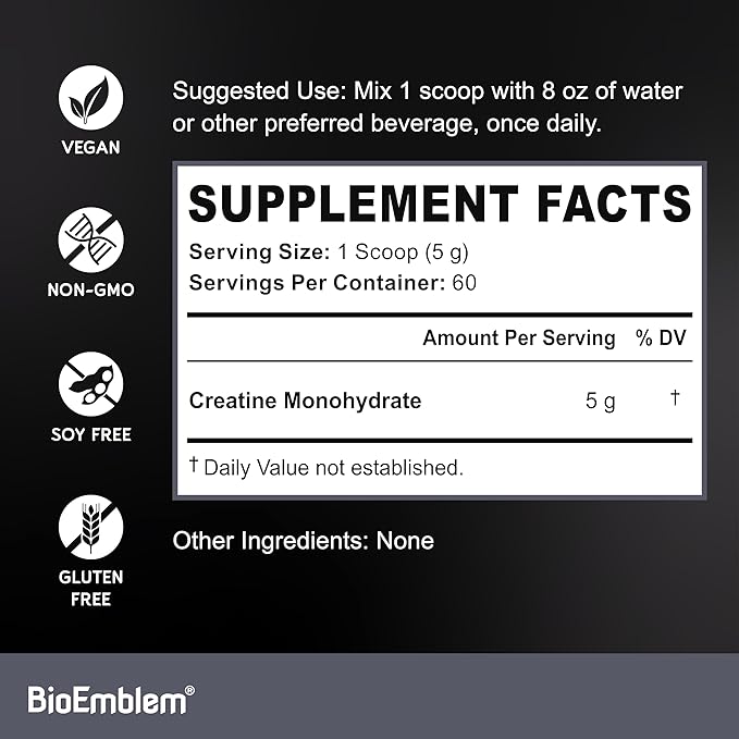 - Pure Creatine For Men & Women: BioEmblem's rapid absorption micronized creatine monohydrate is fundamental to building protein in your muscles during workouts. This essential amino acid is helpful for all fitness enthusiasts and athletes - our high grade creatine powder supports muscle mass and strength.*