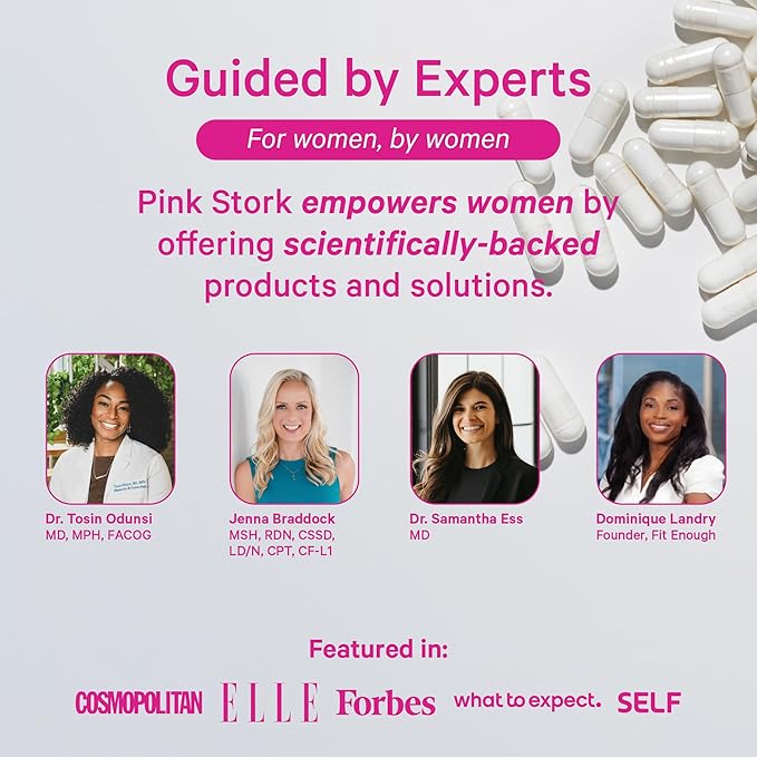 - CLEAN: Our prenatal vitamins for women do not contain GMOs, gluten, soy, or dairy. A female team of experts formulates Pink Stork products, which are always third-party tested. Each bottle contains a heart shaped ScentCert - so your supplements taste and smell as great as they make you feel!