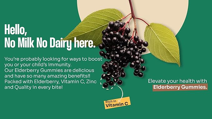 - VEGAN: Crafted with only the finest organic ingredients, non-GMO, and free from gluten, soy, and artificial colors/ flavors. You'll love the fruity taste of these plant-based elderberry gummies that contain "No Milk No Dairy"