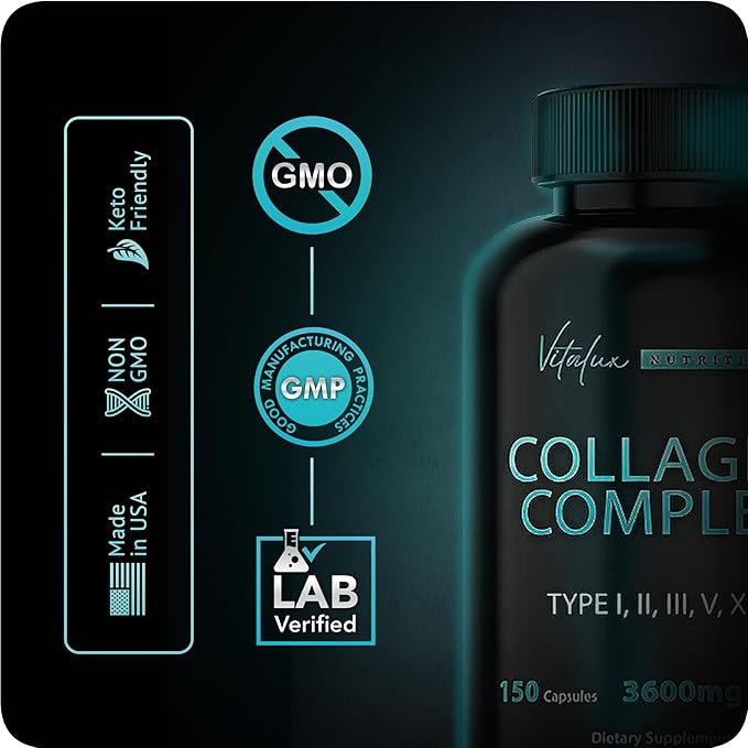 Collagen for Women & Men - Vital Nutrition - Hydrolyzed Collagen Peptides - Multi Collagen Capsules, Keto Friendly, Healthy for Skin, Nails, Bones & Joints, NonGMO- Type I,II,III, V, X - 150 Capsules