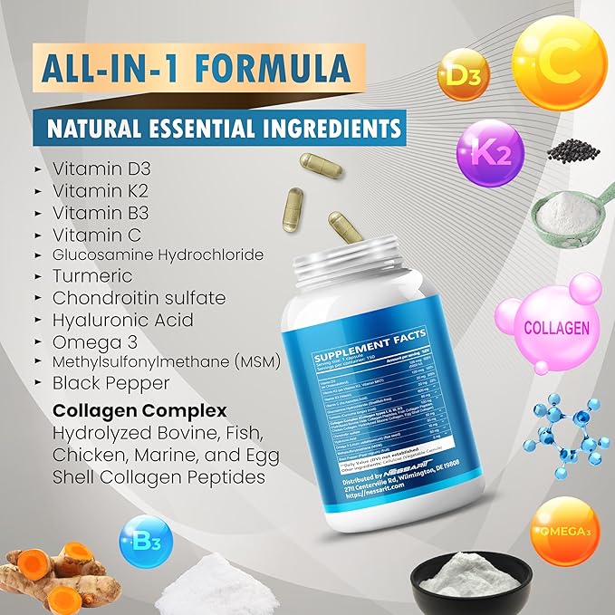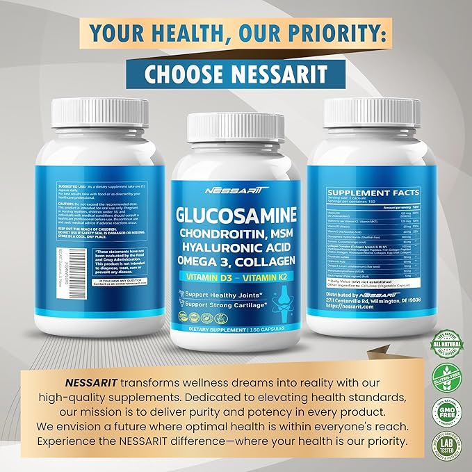 - Top-Quality Ingredients: Nessarit's Glucosamine Supplement is crafted with meticulously tested ingredients, each validated by third-party labs for both purity and effectiveness