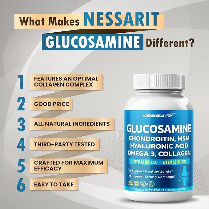 - Exceptional Value: Get a 150-day supply of Nessarit Glucosamine Supplement with 15 essential ingredients. Take just one capsule daily for the best results