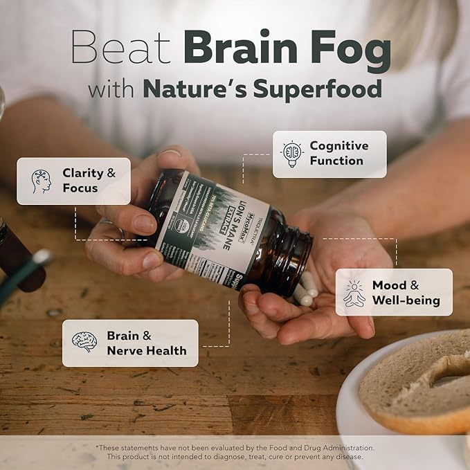 MycoMax Lions Mane Supplement - 70% Beta Glucans, Max Potency Organic Lions Mane Extract, US Grown + Ultrasonic Extraction - 500 mg serving - Supports Mental Clarity, Focus and Memory - 60 Capsules