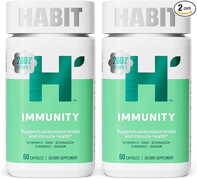 Habit Immunity Supplement 2 Pack (120 Capsules) - New Look, Echinacea, Elderberry, Turmeric, Zinc Blend to Support Immune Health and Antioxidant Levels, Vegan, Non-GMO