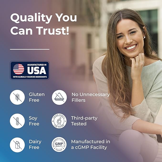 - QUALITY ENSURED: Our easy-to-swallow 6-in-1 complex capsules are tested by third-party laboratories to ensure purity and potency. The complex is gluten free, soy free and dairy free.