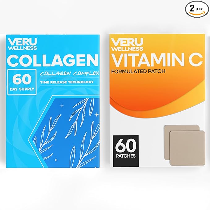 Veru Wellness Anti Aging Duo Lifestyle Patches Collagen C - Self Adhesive Time Release Topical Patch, 8-10 Hours (60 Day Supply)